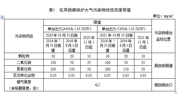 4.1 在用燃煤鍋爐執行表1中的大氣污染物排放限值。