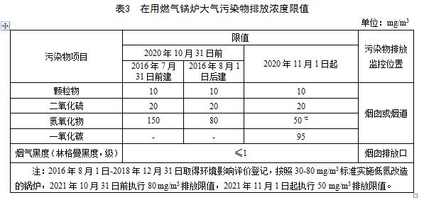 4.3 在用燃氣鍋爐執行表3中的大氣污染物排放限值。
