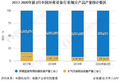 從細分行業產量來看,2019年中國固體廢棄物處理設備產量為8.38萬臺,水質污染防治設備36.36萬臺,環境監測專用儀器儀表為528.42萬臺,大氣污染防治設備為43.89萬臺,均較上年出現不同程度的增長。