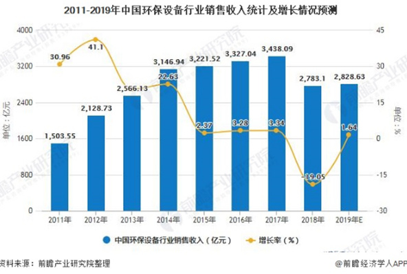 4、2019年中國環保設備行業銷售收入將chao2800億元