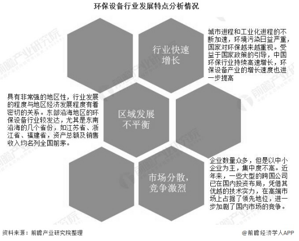 環保設備行業的發展共有三大特點,分別是行業快速增長、區域發展不平衡及市場分散,競爭激烈。具體分析如下: