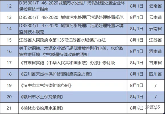 8月份這些環(huán)保相關(guān)的文件將要實施