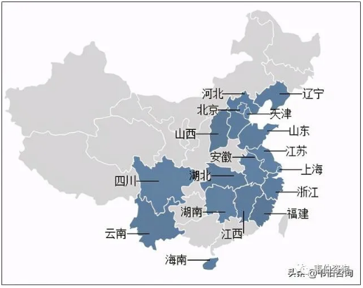 圖表 2:VOCs排污費(fèi)征收試點(diǎn)省份分布